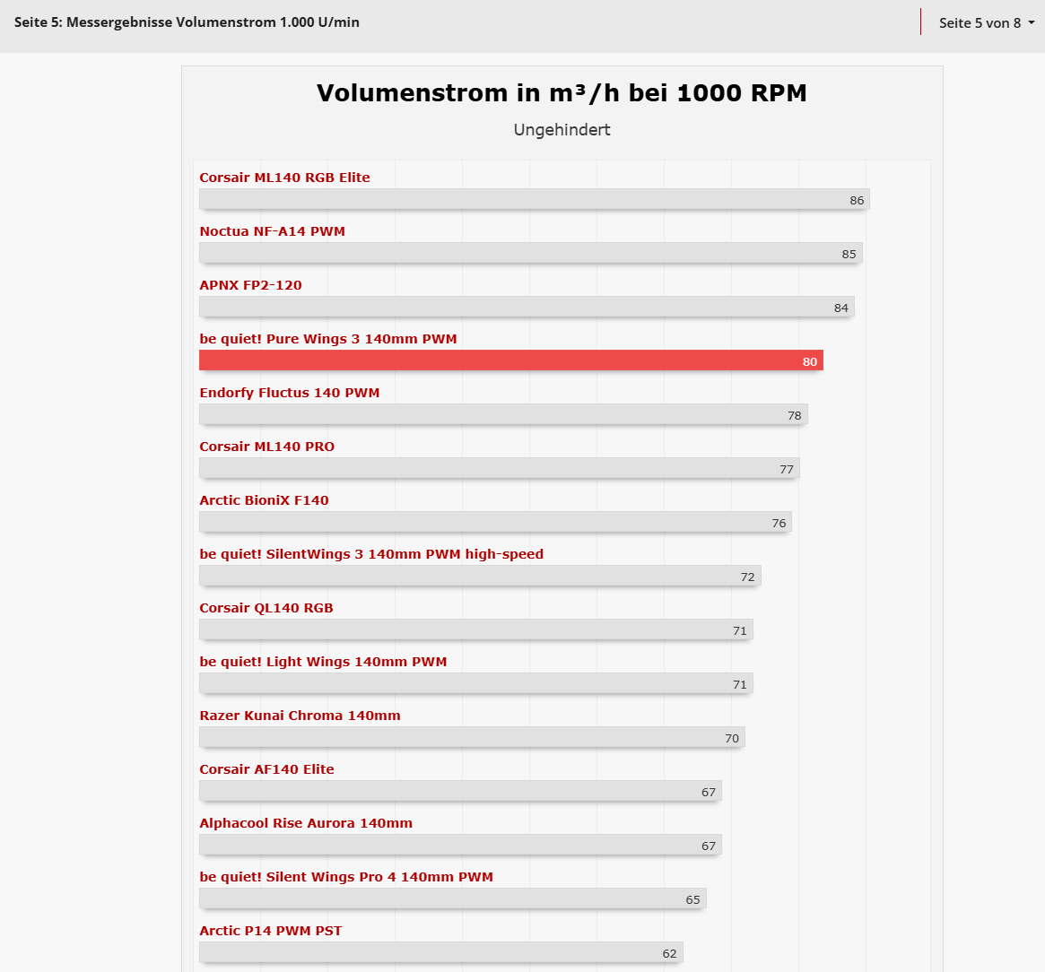 Und deutlich mehr als Arctic P14 bei gleicher RPM.