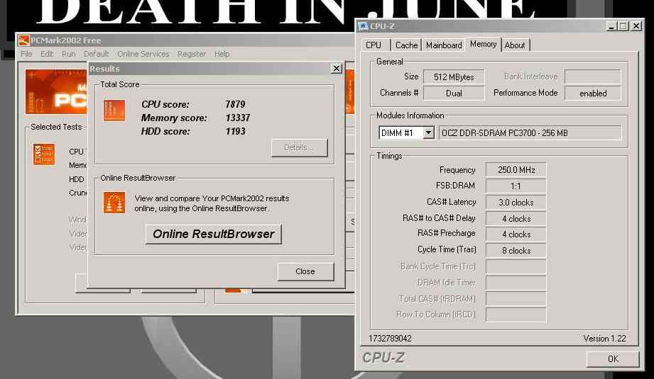 Im PC-Mark02 habe ich "CPU=7054" und "Memory=8814". Auch ein ganzes Stück weniger beim Speicher als bei dir.