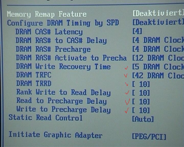 manuelles setzen der settings aus dem prom des speicher 1000 mhz cl4 4 4 12 28