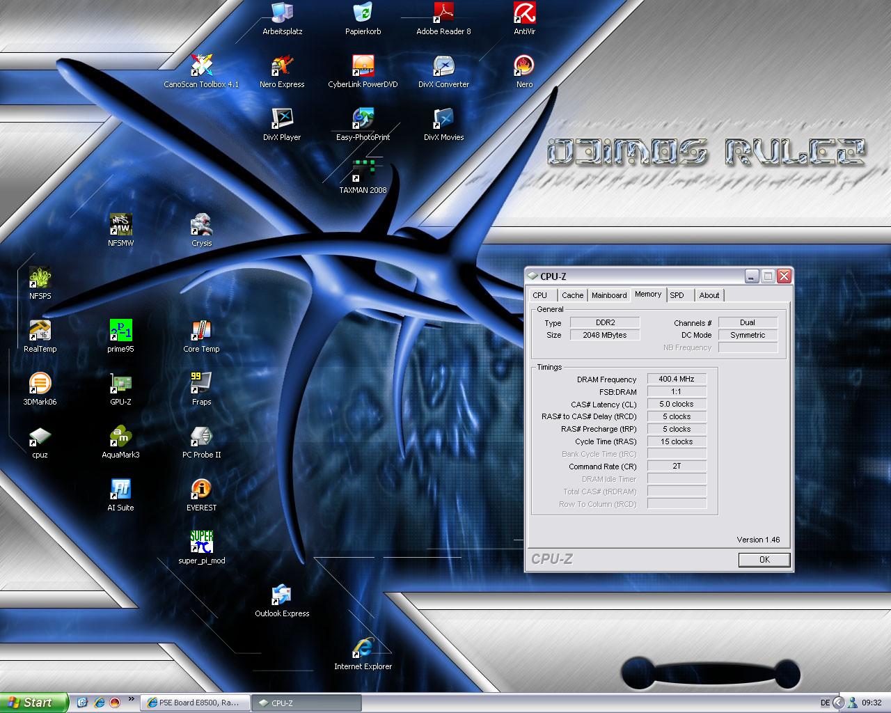 Motherboard P5E mit Core 2 Duo E8500 weiterhin hab ich AData RAm 2x2GB PC1066.