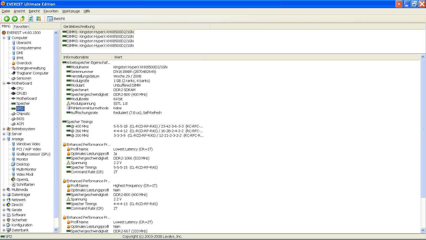 Modulname Kingston HyperX KHX8500D2/1GN (zeigt mir Everest an)