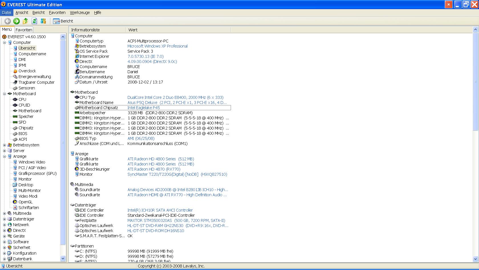 Grafikkarte ATI Radeon HD 4870 512MB GDDR5 (MSI die OC version)CPU Prozessor DualCore Intel Core 2 Duo E8400, 2000 MHz (6 x 333)