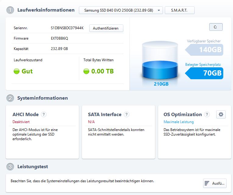 Also was tun... Samsung Magician gestartet und siehe da.... AHCI ist nicht aktiviert und... SATA-Schnittstellen konnten nicht ermittelt werden.