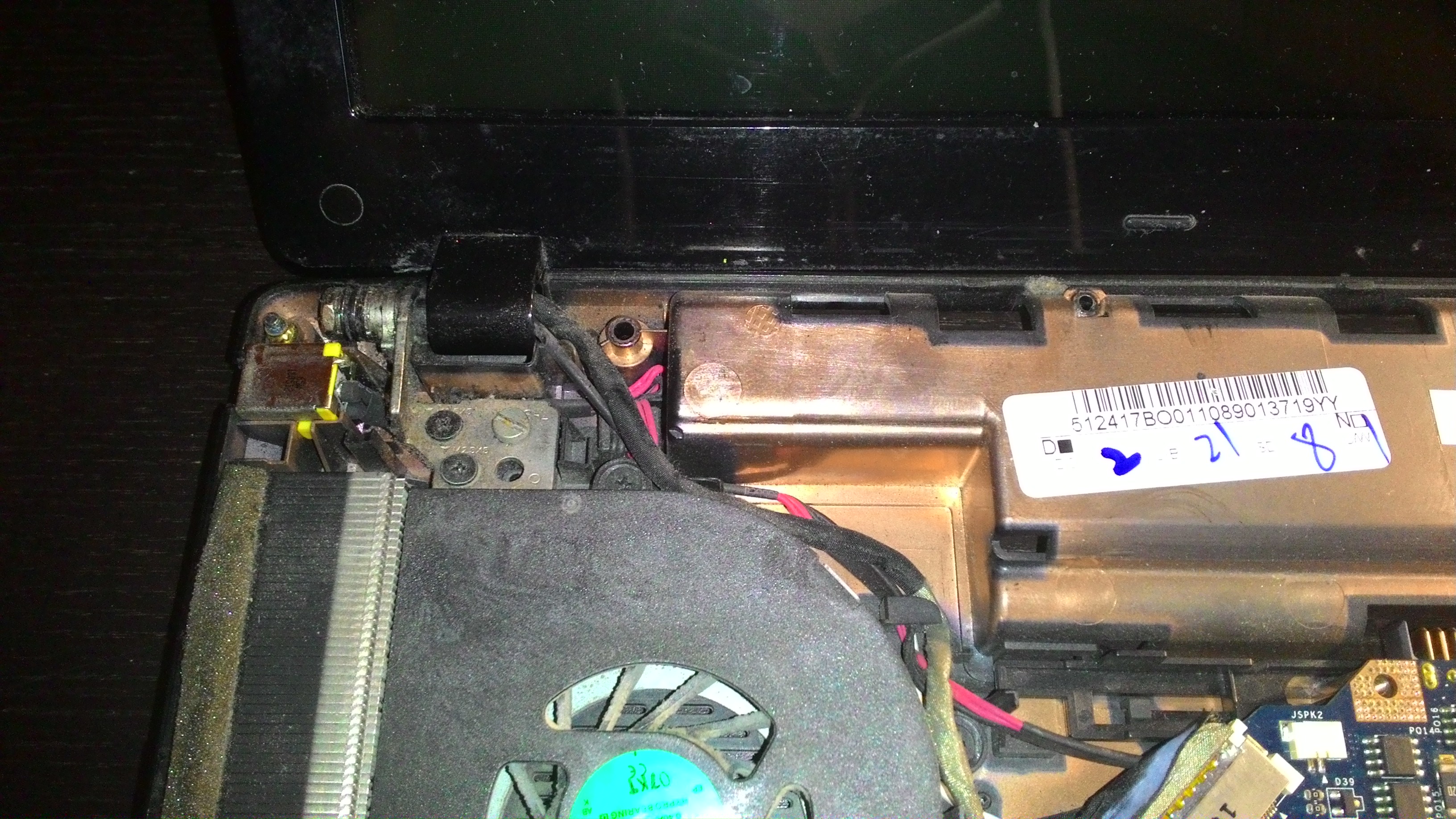 -Die Verkabelung vom Mainboard zum Bildschirm sieht gut aus, soweit man das sehen kann. Leider sehe ich nur bis zu den Scharnieren und weiß auch nicht wie ich den Rest inspizieren könnte.