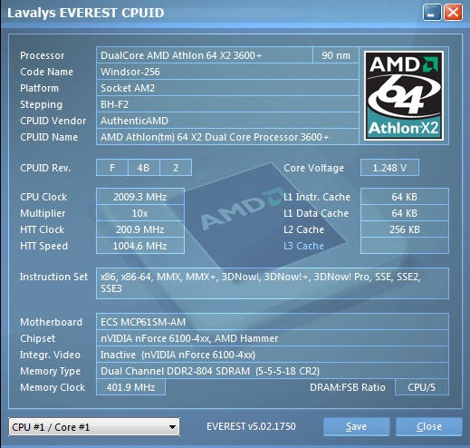 Verbaut ist das ECS MCP61SM-AM (wohl ein ein OEM-Mainboard von ECS) , darauf steckt ein AMD AthlonX2 3600+ und derzeit schon aufgerüstete 4GB Ram ...