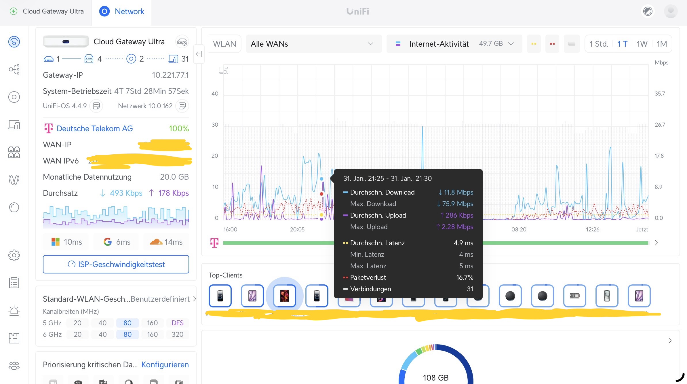 ich hab seit ca. einer Woche das Problem, dass plötzlich unser Heimnetzwerk „stockt“. Anwendungen wie YouTube laden sehr lange, man wartet auf Websites bis diese aufgebaut sind, und irgendwie fühlt sich alles langsam an.