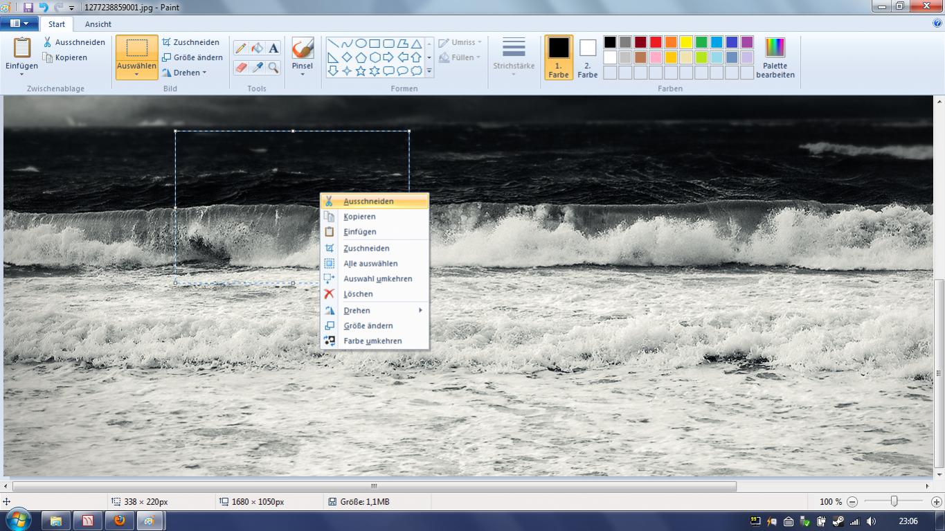 Vista/7: Den Teil, den du willst, markieren und dann oben auf "Zuschneiden" klicken. Dann speichern.