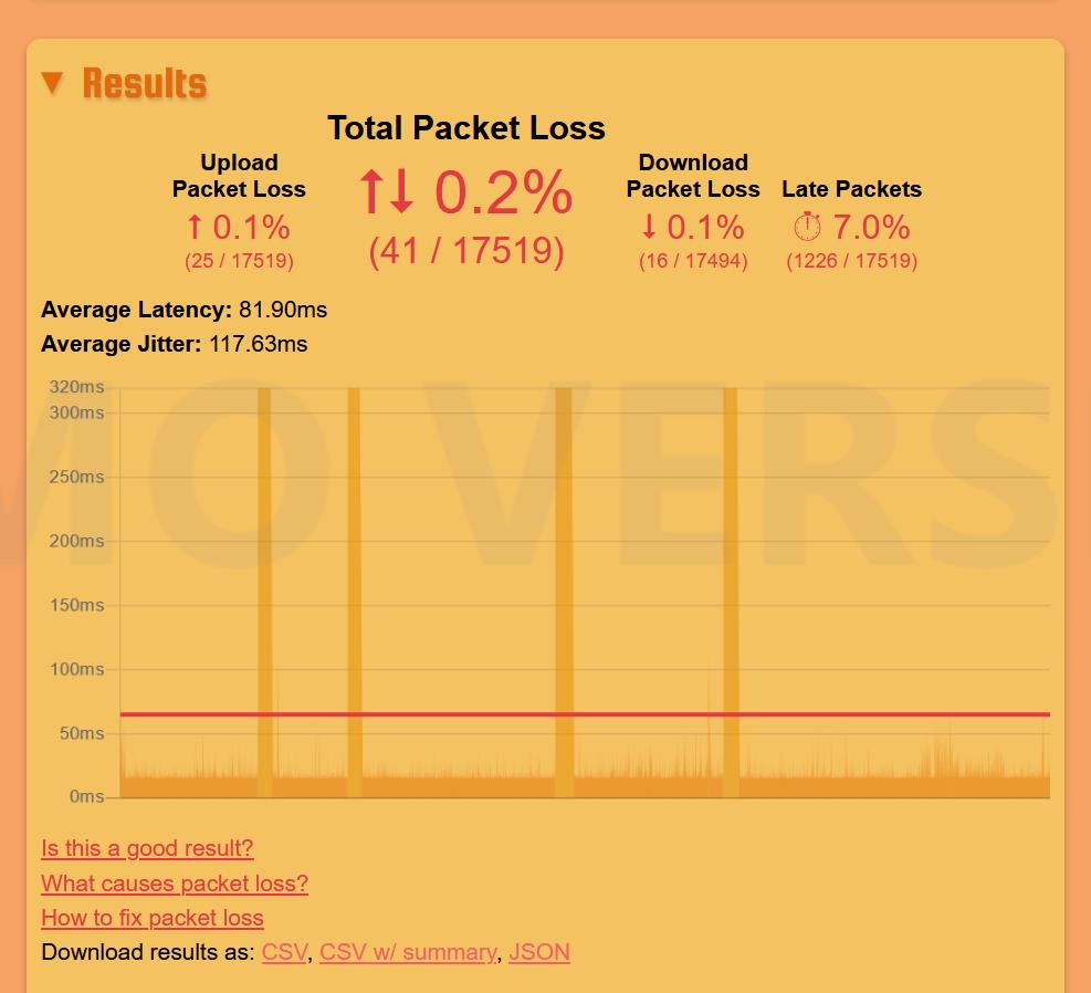 Das ganze kommt auch an allen Geräten vor die im lokalen Netzwerk sind. Wenn ich z.b. den Test von https://de.packetlosstest.com/ auf dem PC durchlaufen lasse (der ist über LAN) verbunden, ist das Ergebnis das gleiche, als wenn ich es auf dem Smartphone im WLAN teste. Wenn ich gleichzeitig Tests laufen lasse, sind die Paketverluste auch Zeitgleich.