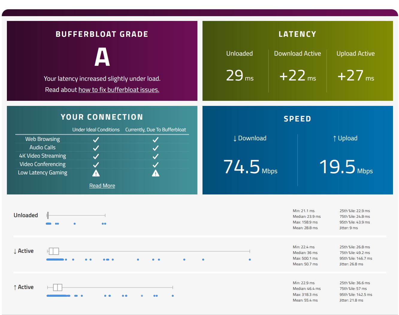 Ja, zwar hat die 7590 jetzt ähnliche Werte...aber Paketverluste zeigen beide Boxen. Mal mehr, mal weniger. Der Alltagstest mit der 7520 steht noch aus. Ich muss dann auch mal die Server IP eines Gaming-Servers raus finden, die ich dann über Pingplotter oder MTR über längere Zeit anpingen kann.Vanguardboy schrieb:@KaPutty aber die 7520 zur 7599 ist ja schon ein großer Unterschied mit dem bufferlbload A zu C ..