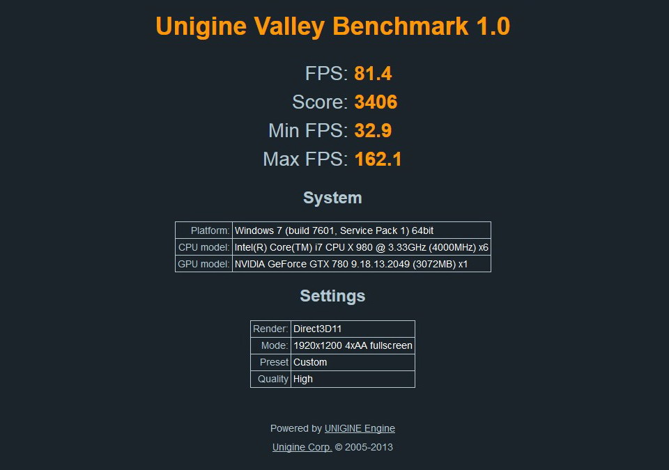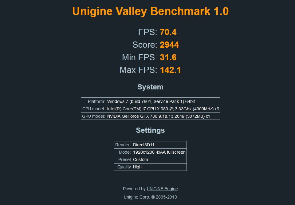 mich haben die 1320 auch verwundert, habe daher gerade den Valley nochmals laufen lassen (da werden oben rechts im Bildschirm die Werte angezeigt). Habe davon auch ein paar Bilder gemacht und zwar mit TT= 72°C und Standardwert (78°C). Ebenso hat mich mal der Verbrauch interessiert. Ist zwar schlecht zu sehen, aber im Leerlauf zieht meine Kiste um die 150 Watt, im Benchmark mit TT 72°C sind es dann um die 310 bis 320 Watt und bei Werkseinstellung (78°C) waren es dann zwischen 385 und 415 Watt. Ergebnisse mit den 72er und 78er Werten sind auch angehängt.