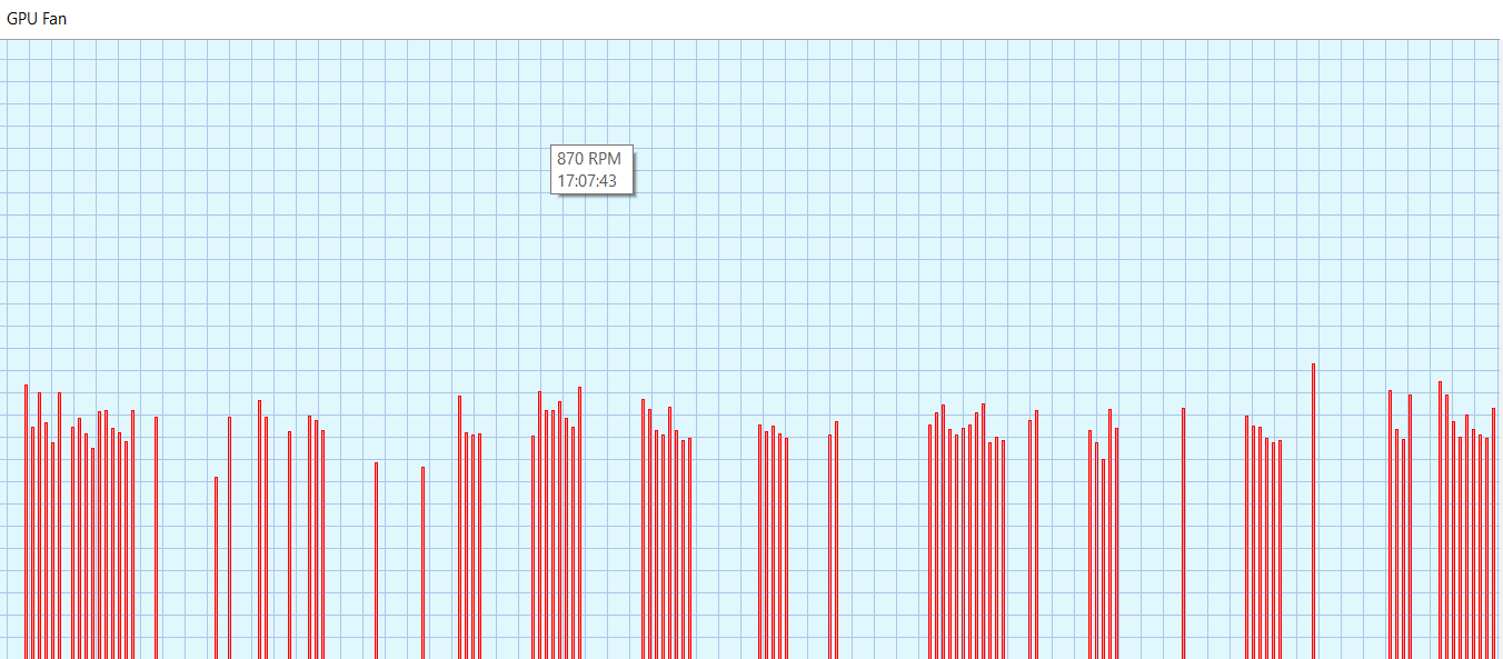 Nun zu meinem Problem mit der Grafikkarte. Die Lüfter der Grafikkarte drehen alle 5 Sec zwischen 800 und 1000 rpm auf.