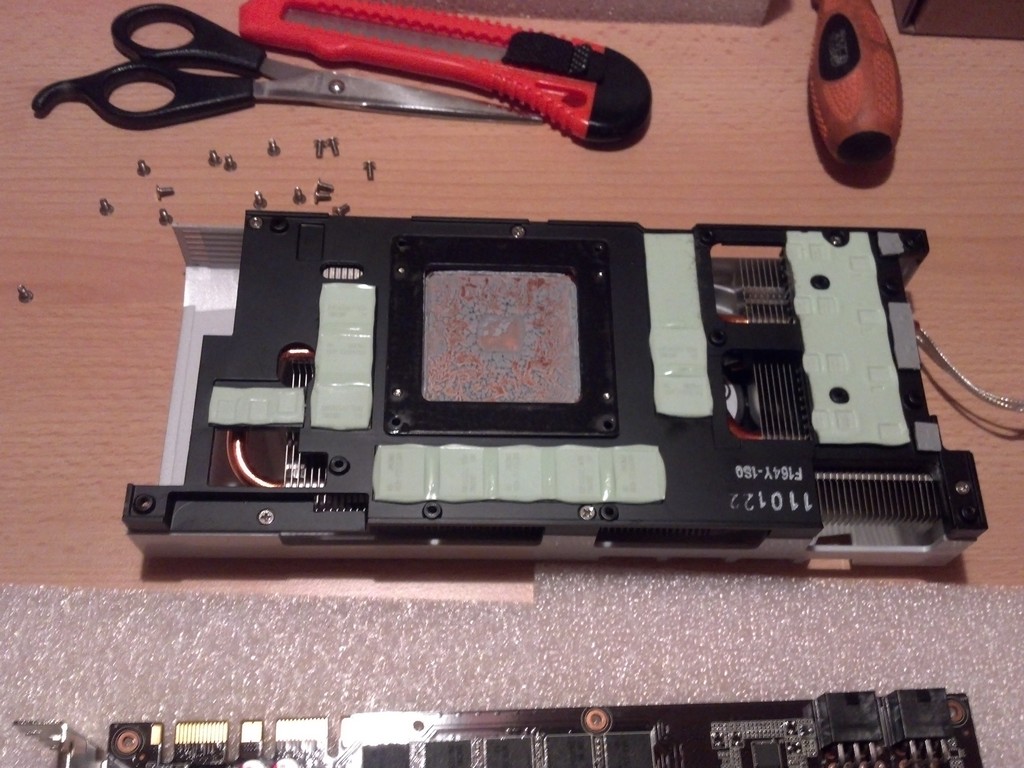 Beim einbau des Kühlers gab es keine weiteren probleme mit der GTX 570, da diese ja im nicht Referenz design ist ( 2x DVI übereinander), hat alles gepasst.