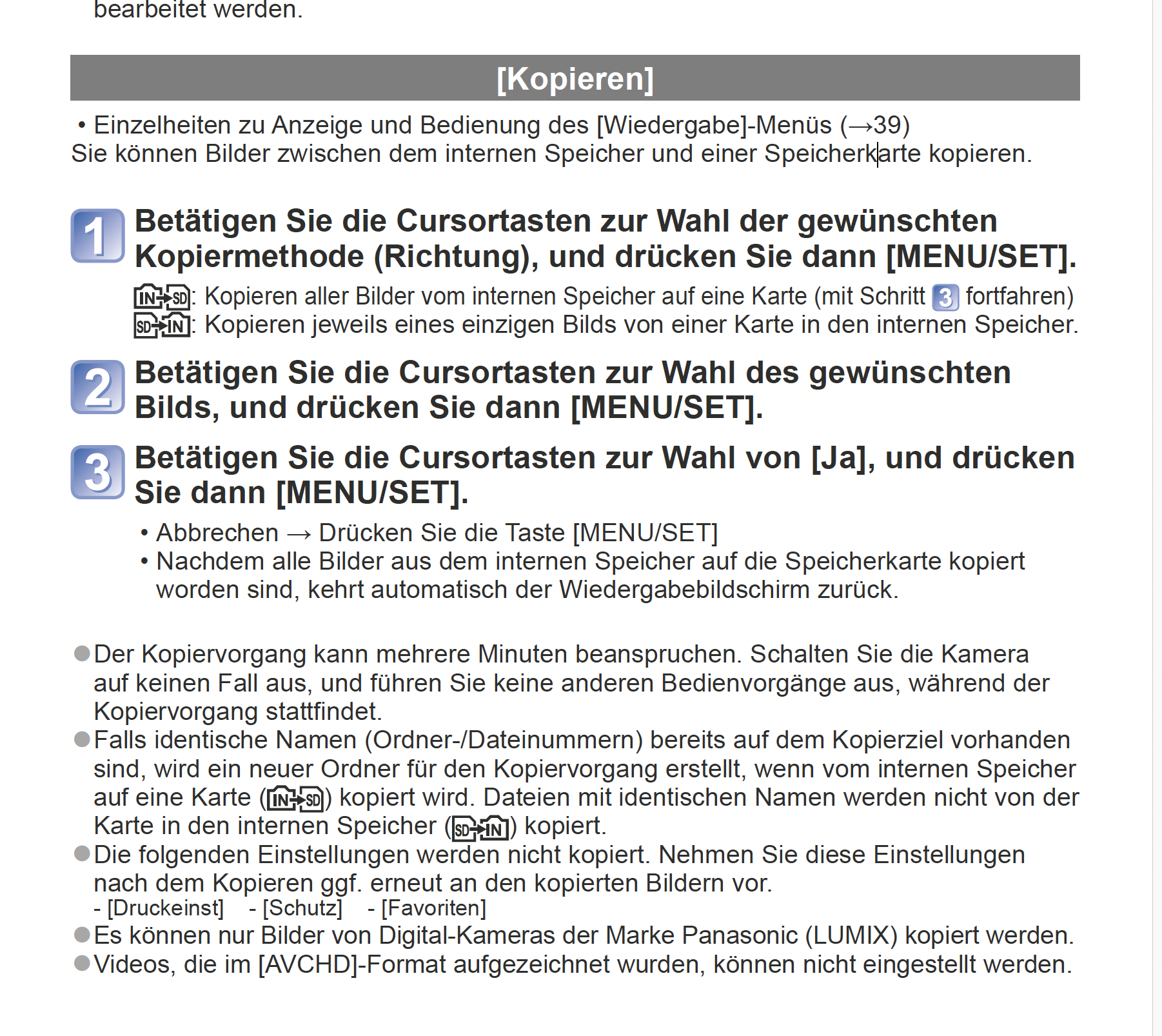 Habe gerade was probiert innerhalb der Cam in Sachen Kopieren von Intern auf SD.