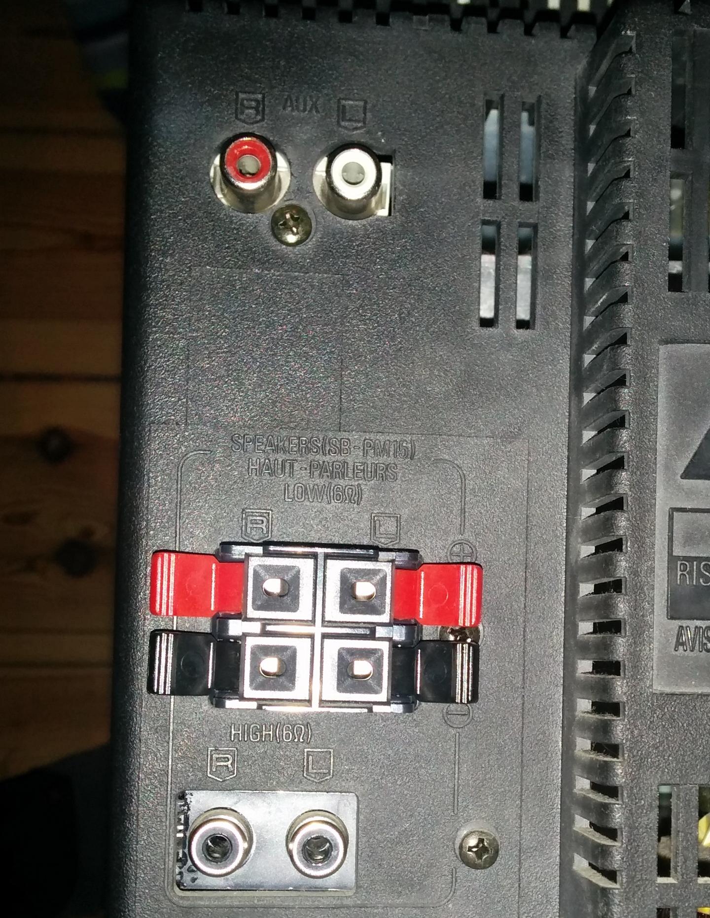 Ich hatte gestern einfach mal die Adern (siehe Bild oben) an die Front-Anschlüsse angestöpselt. Wie kann ich den Tieftöner (Bild unten) nun mit dem Onkyo verbinden? Oder ist das nicht möglich? Der Ton war bisher eben sehr blechern und leblos.