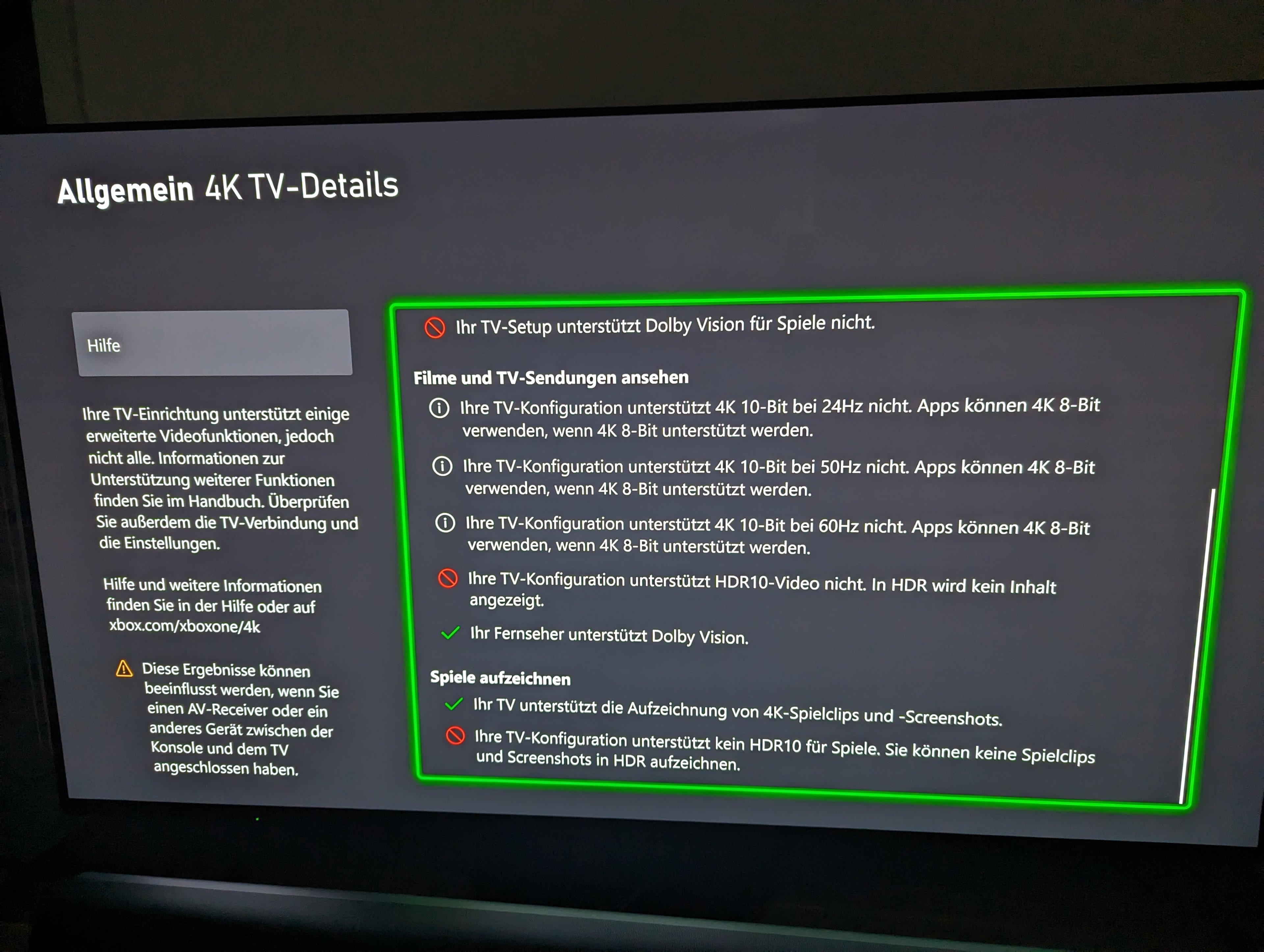 TV bleibt immer 4k 60hz-Modus ohne HDR, Dolby Vision etc.