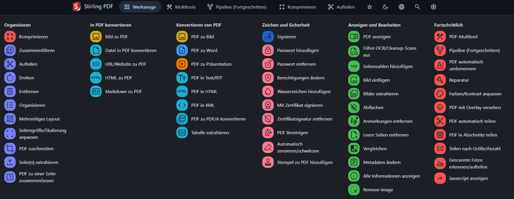 In einer Doku zu Paperless hab ich das PDF Tool Stirling-PDF gefunden.