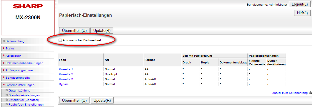 mein betrieb hat sich einen neuen drucker gekauft und zwar den kyocera km-3060 und ich darf es nun einstellen und hab ein problem mit dem papier. wie kann man es einstellen, dass der drucker eine fehlermeldung abgibt, wenn das papier einer kasette alle ist? es ist nämlich ziemlich ätzend, wenn man firmenpapier gerade benötigt und man druckt man 20 seiten aus und von denen sind dann 10 seiten auf normalen papier und man kann alles neu machen. und für den preis sollte man sowas eigentlich erwarten können und in der anleitung steht auch nichts dazu..