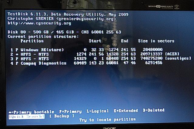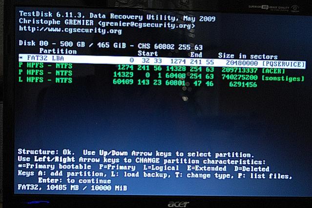 Setze mir mal einen Screen von Testdisk nach Analyse von deiner gegenwärtigen Partitionstabelle.