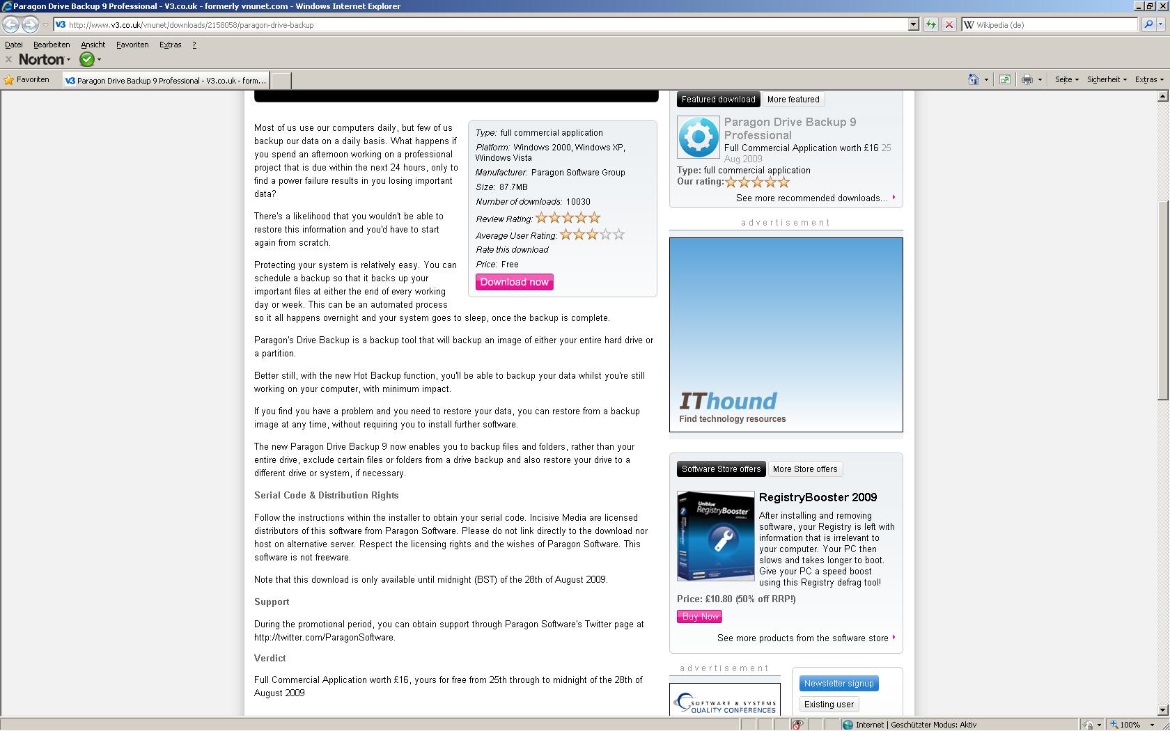 Paragon Drive Backup 9 Professional (free from Aug 25th to 28th of 2009)
