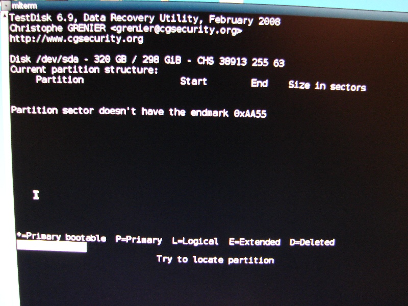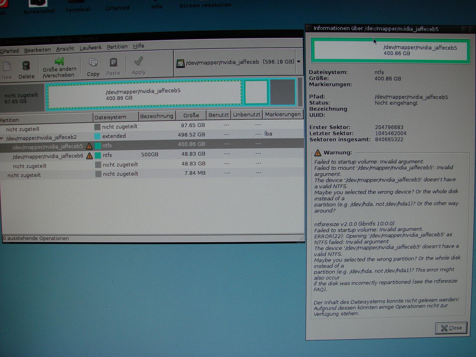 Ebenfalls habe ich von einer Ubuntu Disk gebootet, um dort vielleicht auf die Platte zugreifen zu können und meine Daten zu sichern -> wird nicht gefunden.