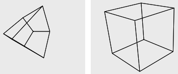 Auf jeden Fall möchte ich jetzt gerne diese Parallelprojektion in eine perspektivishe Projektion umwandeln. Also, dass das Bild für den Betrachter "natürlicher" aussieht. So (links die Parallelprojektion und rechts die gewünsche Projektion):