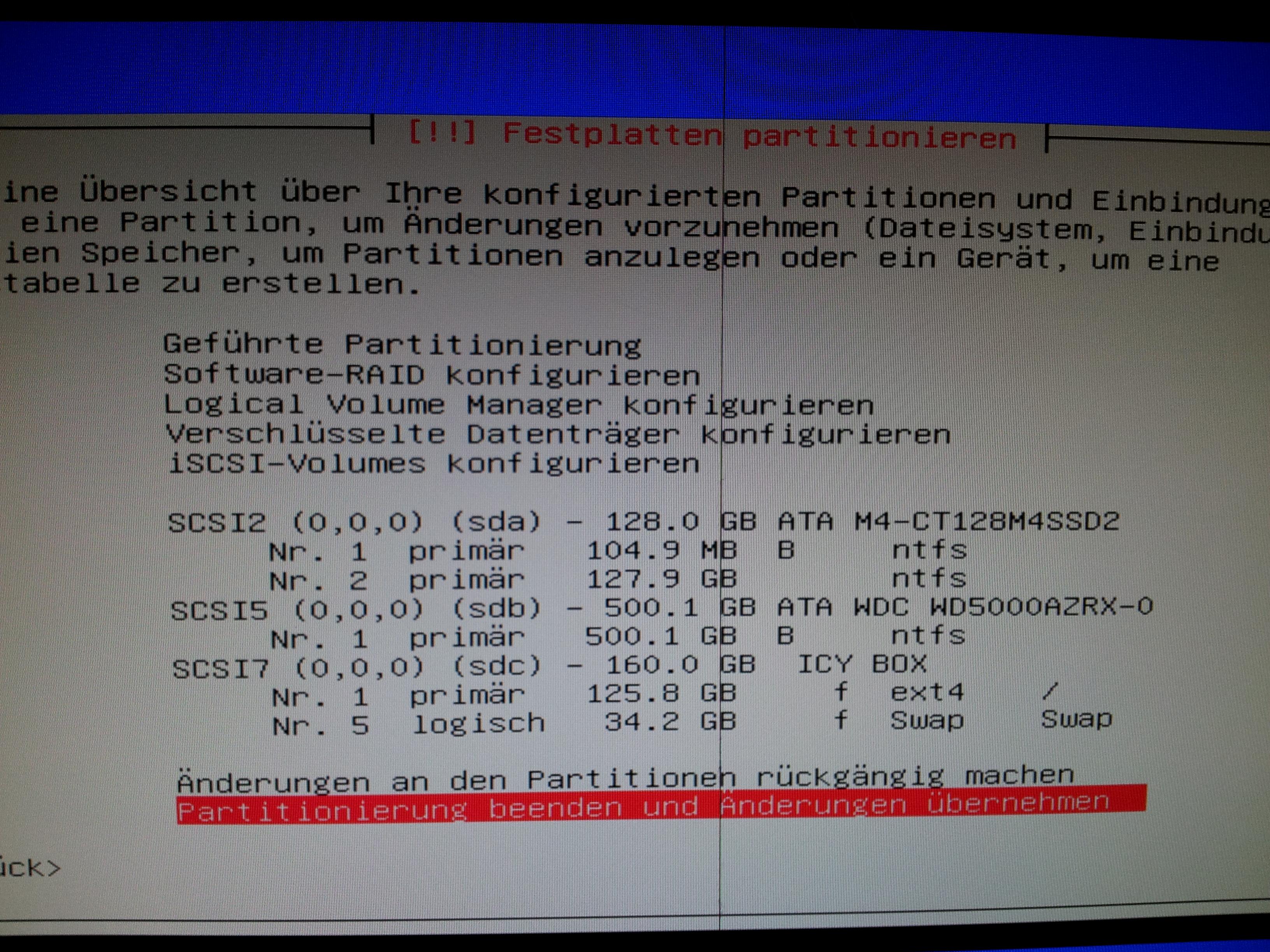 Habe während ich Parrot installiert habe Screenshots gemacht, sowie von der Fehlermeldung
