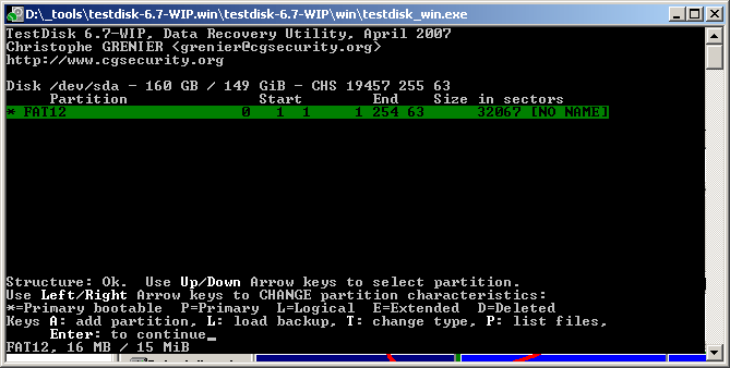 Drücke ich dann bei FAT12 [p] bekomme ich Bild 10. zu sehen.