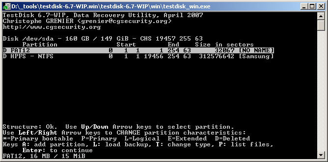 (Es wird eine FAT12 Partition angezeigt, und dann die NTFS Samsung Partition)
