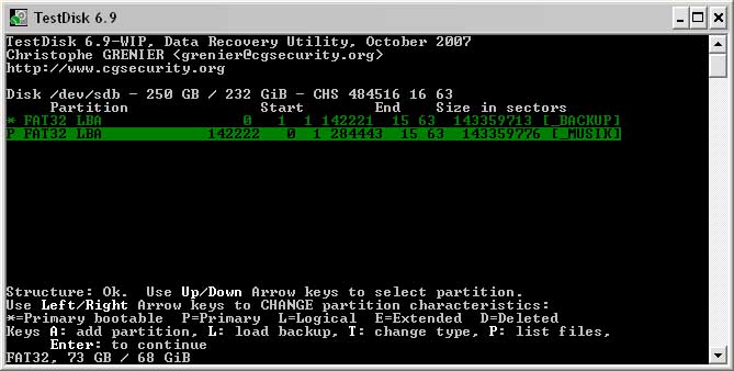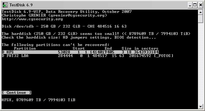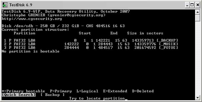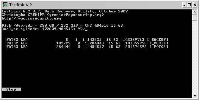 Ich habe schon mal Testdisk 6.8 laufen lassen, da kommen ein paar Meldungen, mit denen ich aber nichts anfangen kann: