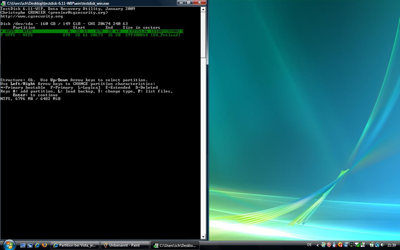 heute hab ich die Windows-Vista-CD vom Hersteller bekommen. Nun werde ich versuchen die Partition wieder herzustellen.