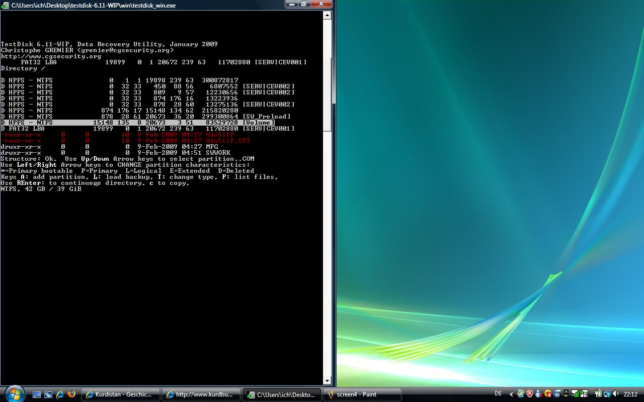 nach dem Vista instaliert wurde, hab ich TestDisk wieder laufen lassen, Deepsearch, die Dateien wurden wieder gefunden.