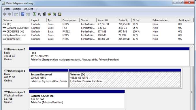 Poste mal Übersicht der Datenträgerverwaltung.