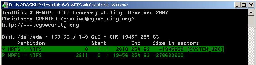 Ansonsten markiere mal die Partitionen der Reihe nach und drücke p ob du irgendwo deine Daten noch siehst?