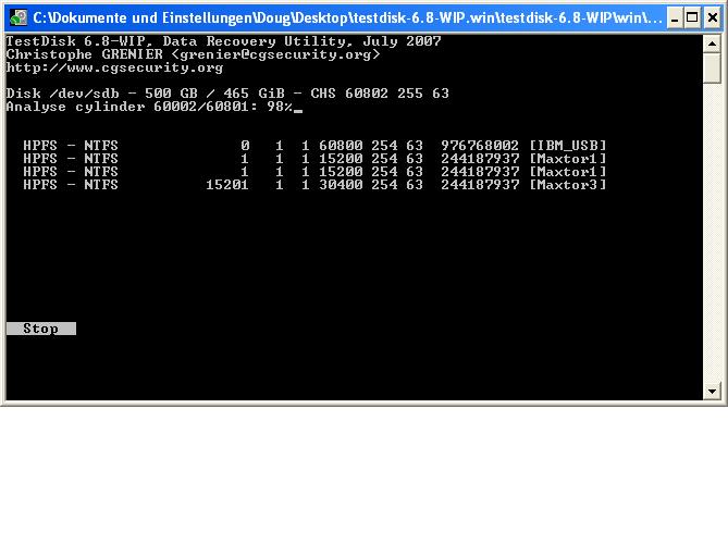 Beende Testdisk und starte den Computer neu.