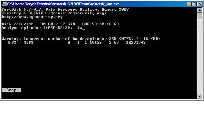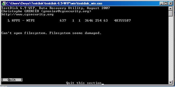 Lade bitte Testdisk Version 6.9 beta für Windows.