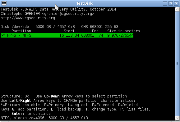 Bei dem zweiten Eintrag wird gesagt "NTFS found using backup sector"