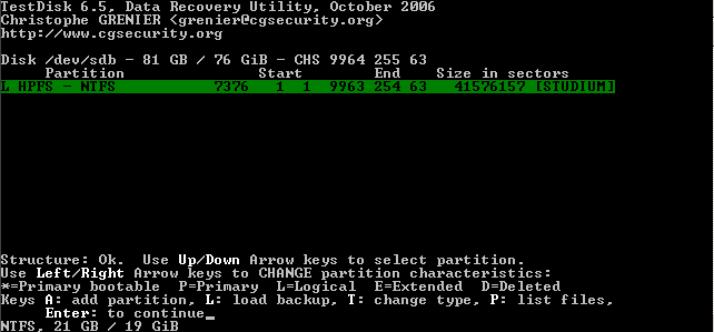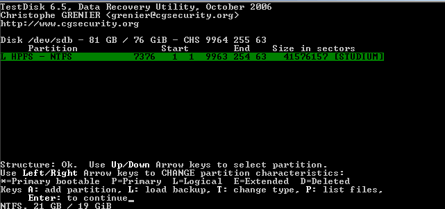 Diese setzt Testdisk automatisch und es braucht dort nichts gemacht werden.