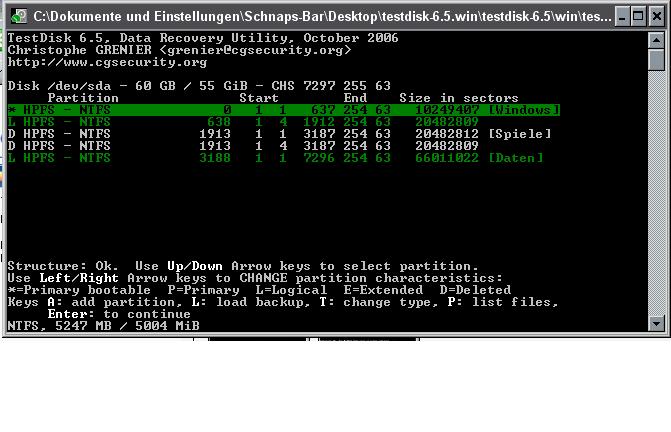 Ich habe mit PM 8.0 zwei Partitionen zusammenführen wollen, weil auf meiner Windowspartition chronisch zu wenig Platz frei ist (5GB). Dann hab ich den Neustart gemacht und PM sollte seines Amtes walten. Allerdings... ists dann abgeschmiert und mit Fehlermeldungen, die ich nicht mehr wiedergeben kann, in die ewigen Jagdgründe verschwunden. Nun sitz ich hier vor meinem PC, hab die C: Partition. Mit den bereits im Archiv gefundenen Tipps und Hilfen, ich benutze Test Disk, hab ich schon die F: Partition herstellen können und habe wieder Zugriff darauf.