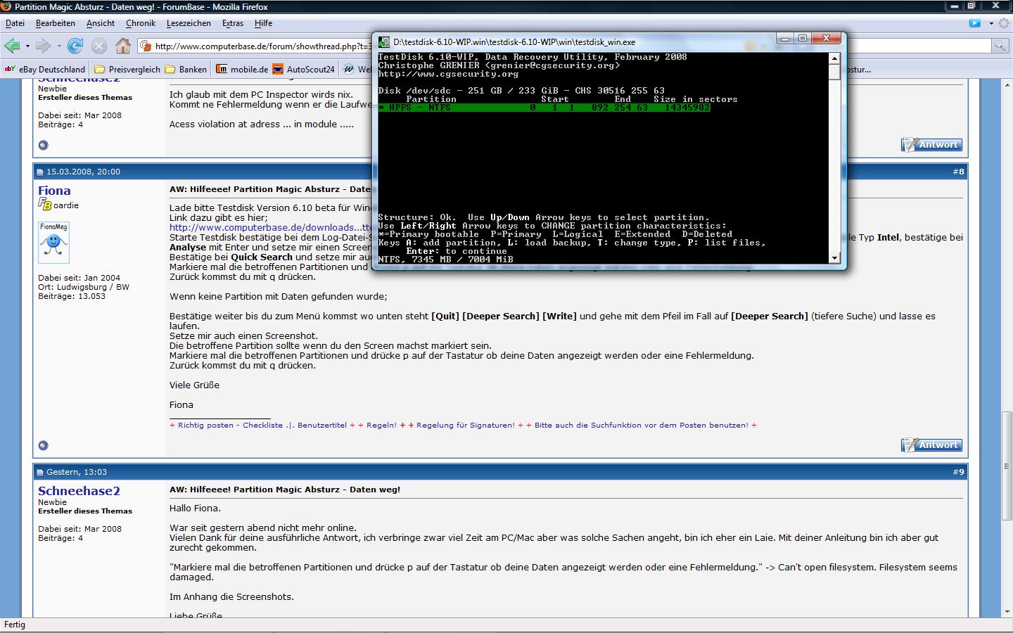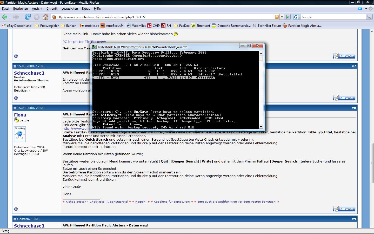 Wäre super wenn mir jemand helfen könnte, wie ich bei testdisk weiter vorgehen sollte. Bin da ziemlicher Anfänger.