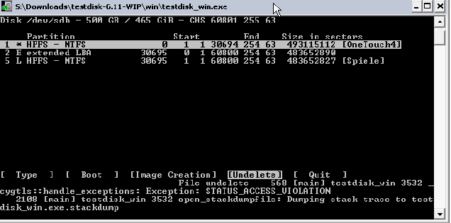 Ich hab nun (wieder) versucht deinen Anweisungen so genau wie möglich zu folgen und dieses mal habe ich meine "Druck" Taste verwendet! (Siehe Anhang; Bild: Nummer 2 zeigt TestDisk kurz vor dem "absturz!?")