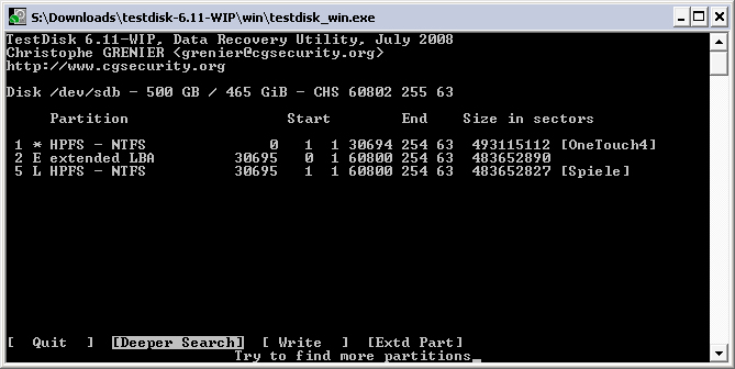 Hatte noch eine TestDisk Version auf meinem Rechner! Hoffe die 6.10 ist auch in Ordnung!
