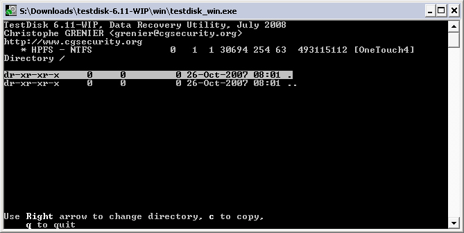 Gehe mal in Testdisk auf das Menü Advanced und dann Undelete.