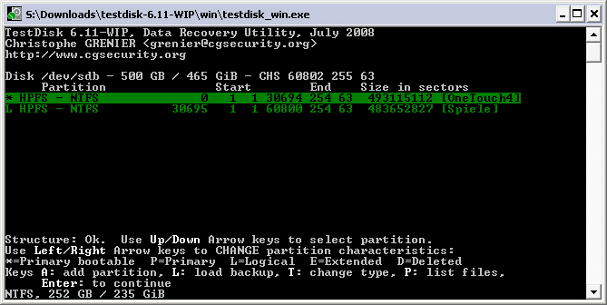 Hatte in den letzten Tagen leider keine Zeit hier in's Forum zu schauen und somit kommen die Testdisk Version 6.11 (Beta) Screenshots erst jetzt! Ich hoffe diese helfen euch/mir, denn ich bin leider noch kein Stück weiter... :(
