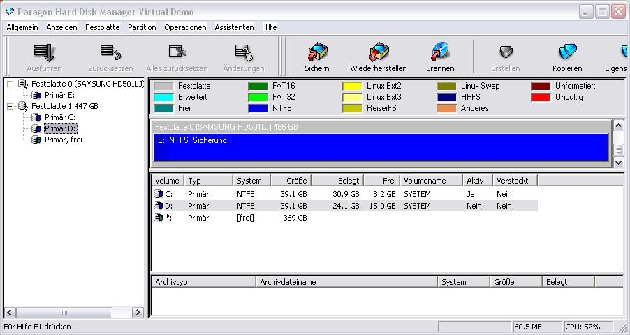 Da kannst du auch wenn im rechten Fenster mehrere angezeigt werden wechseln indem du in Restorer2000 im Menü oben ganz links auf das Laufwerkssysmbol klickst.