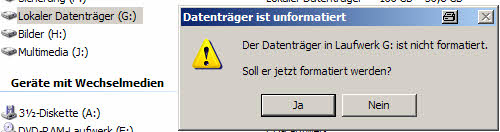 - den Rechner unter WinXp gestartet und die Partiotion wird angezeigt, aber ich kann nicht mehr darauf zugreifen