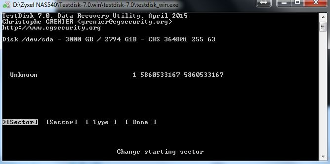 Über Testdisk die Partition über die Eingabe der neuen Sektoren versuchen wieder herzustellen?