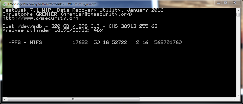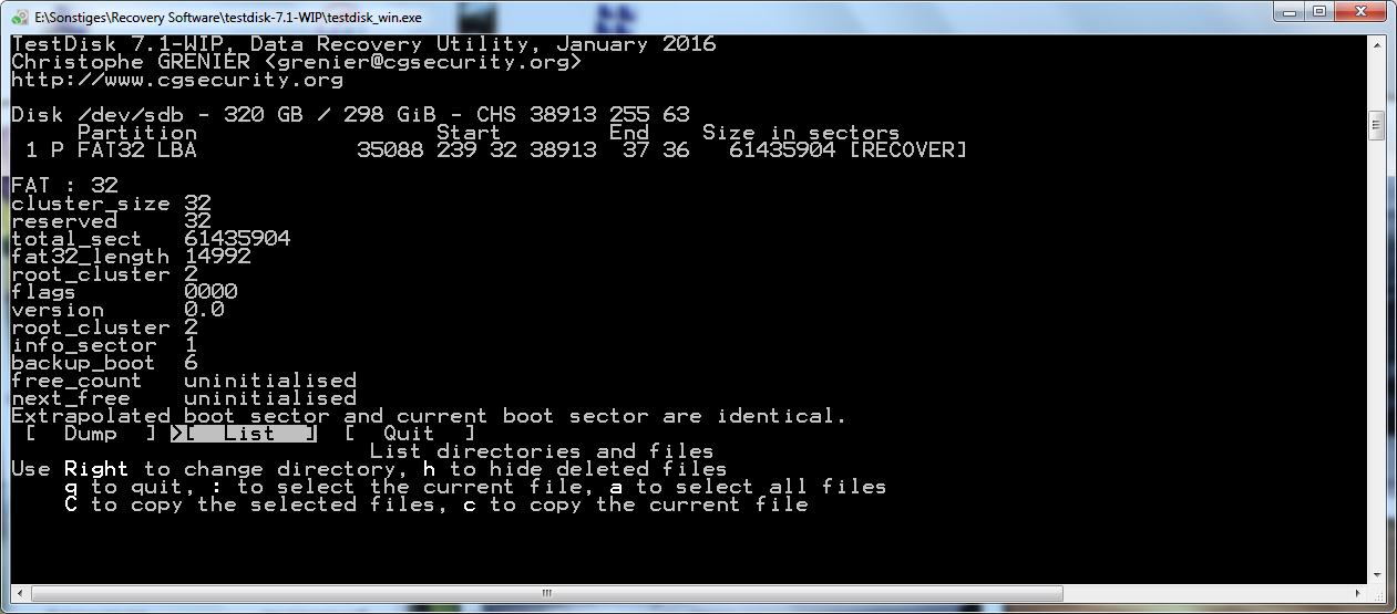 - TestDisk 7.1-WIP: Screenshots angehängt, "seems too small"