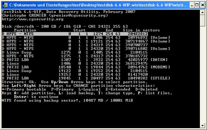 Hab dann mit TestDisk versucht die Partition wieder herzustellen aber irgendwie klappt das nicht!