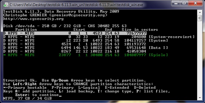 - alles als Deleted "D" markiert und die fehlende Spiele-Partition ist nun als Boot-Partition gekennzeichnet?!