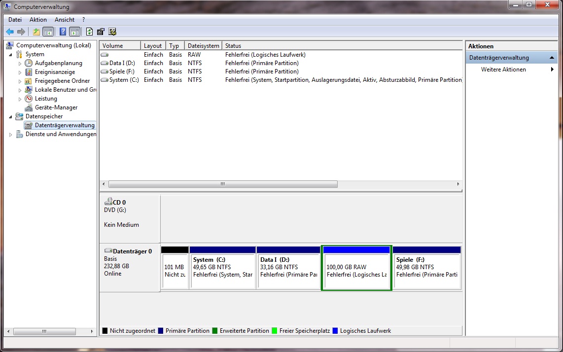 - ABER: die nicht gekennzeichnete Partition zwischen "System" und "Data I", kann das meine TrueCrypt-Partition sein? Vom Speicherplatz dürfte das etwa hinhauen - weiß es leider nicht mehr genau...